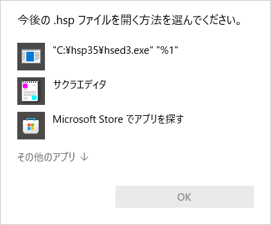 プログラムファイル".hsp"を、常に「HSP3スクリプトエディタ Powered by サクラエディタ」で編集できるようにします。