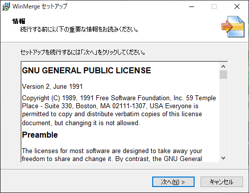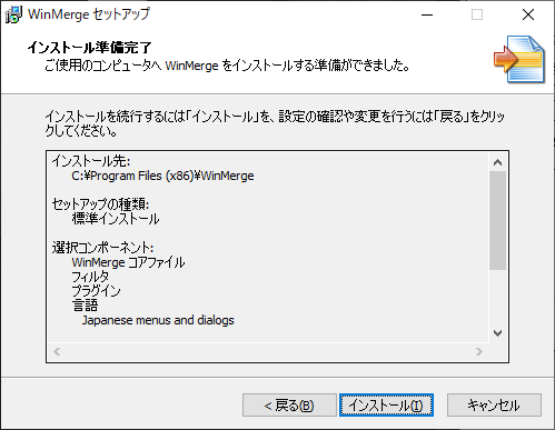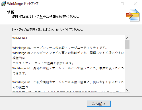 ・ダウンロードしたWinMerge-x.xx.xx-Setupファイルを起動し、インストールします。